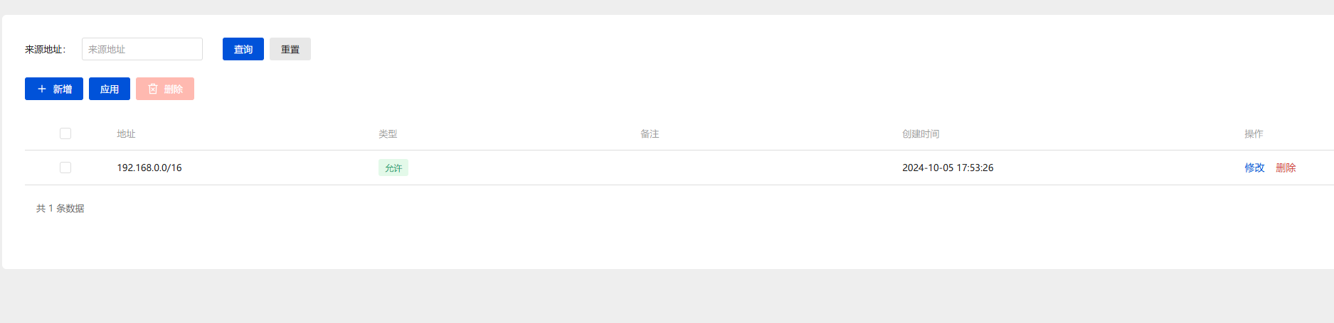 设置允许在PBX内呼叫的白名单地址。设置为白名单后,才可以允许非注册的呼叫送入PBX。