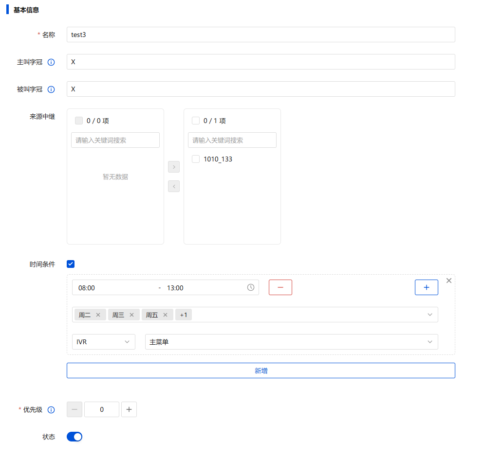 点击呼入路由列表上方的新增按钮即可添加新的呼入路由。