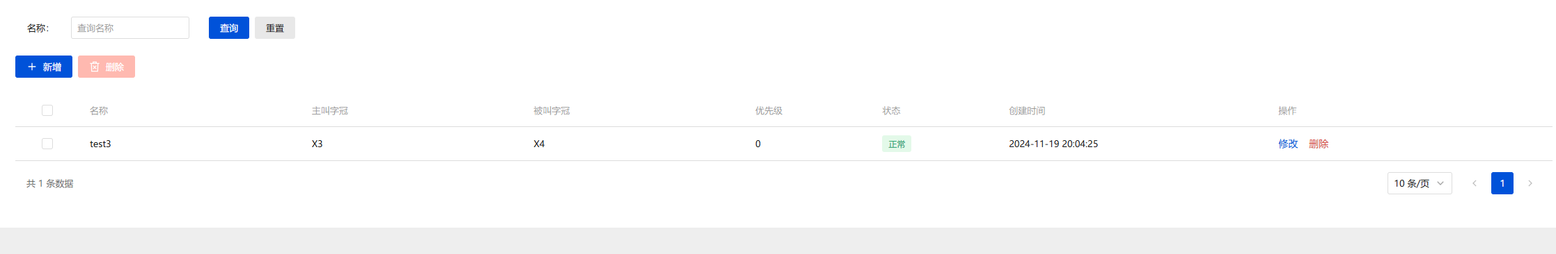 呼出路由管理页面提供了对呼出路由的信息的关键展示、新建、删除、查询等管理。