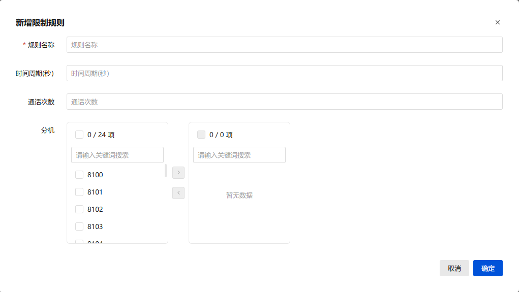 分机 | 作用于此规则的分机号,左侧为可选,右侧为已选。 |