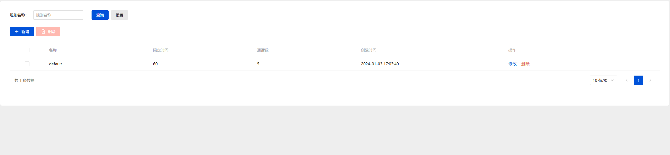 呼叫限制管理页面提供了对呼叫限制规则信息的关键展示、新建、删除、查询等管理。