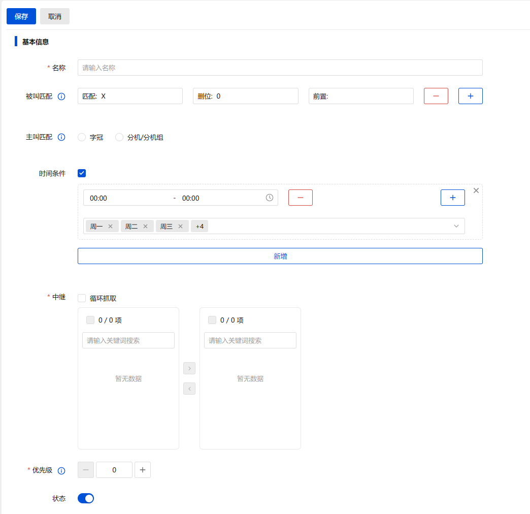 *启用/禁用 | 当状态为禁用时该呼入路由无法使用。 |